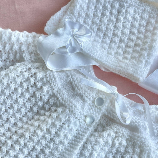 Hand Knitted, Baby Layette Set - Pearl White