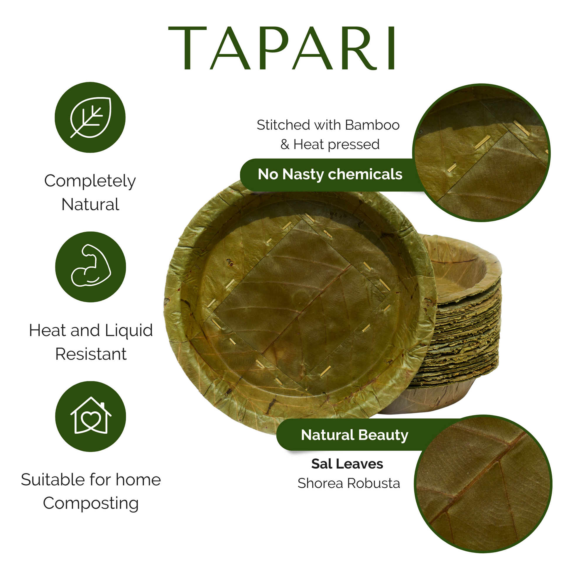 Disposable, biodegradable sal leaf, tableware that’s sturdy, leak-proof, and kind to the planet.