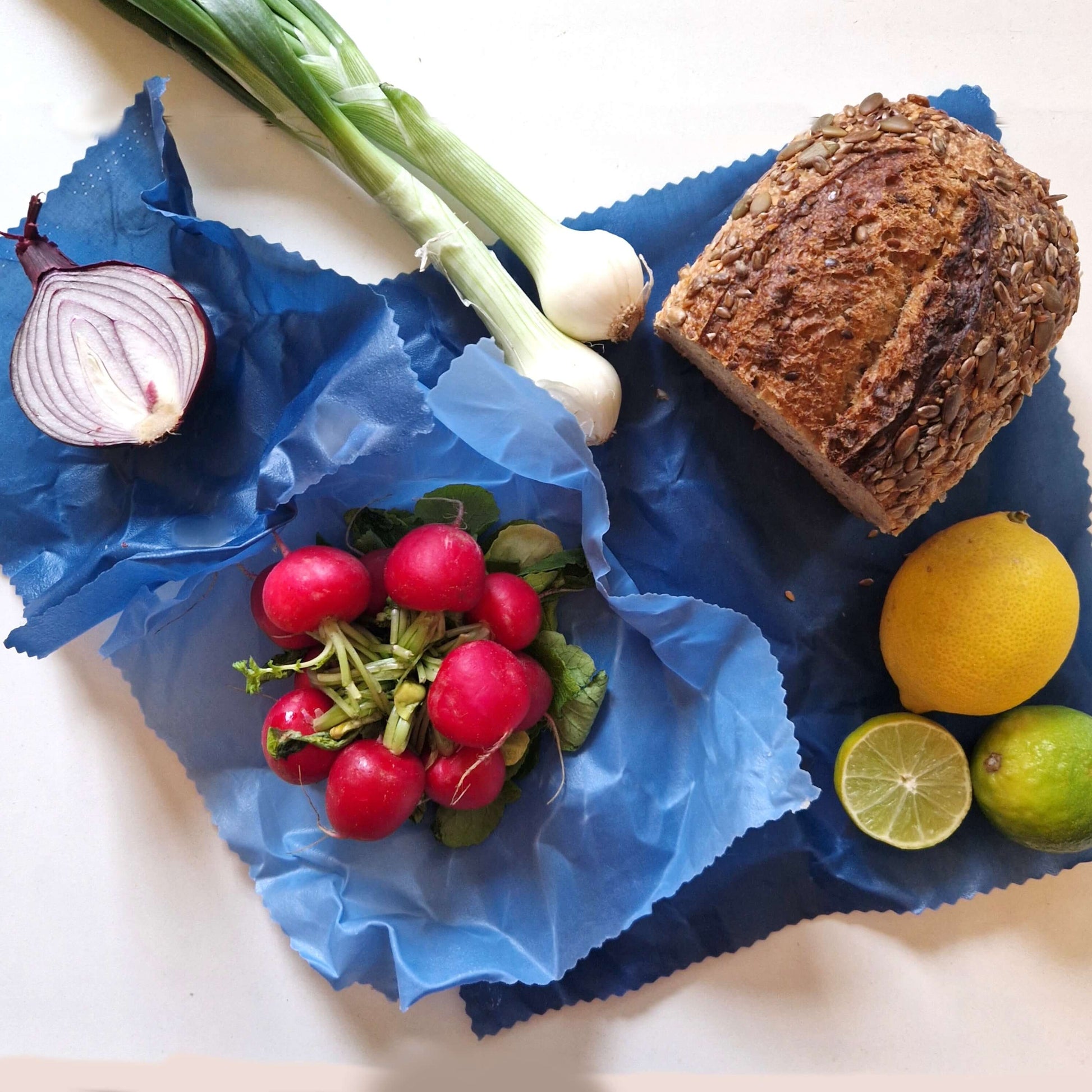 100% cotton that's been soaked in a mix of beeswax, resin and oil to create an eco-friendly, reusable, pliable cover for food that is biodegradable - nothing needs to go to landfill!